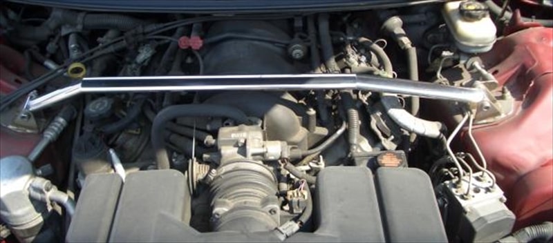ホイールもアメリカンを感じるメッキホイールに交換しましたし、ショックアブソーバーの交換とストラットタワーバーの装着も行いました。