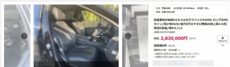 4年落ちで購入したs300hの車両価格は538万円でしたから5年ほどで350万円の値落ちとなりました。