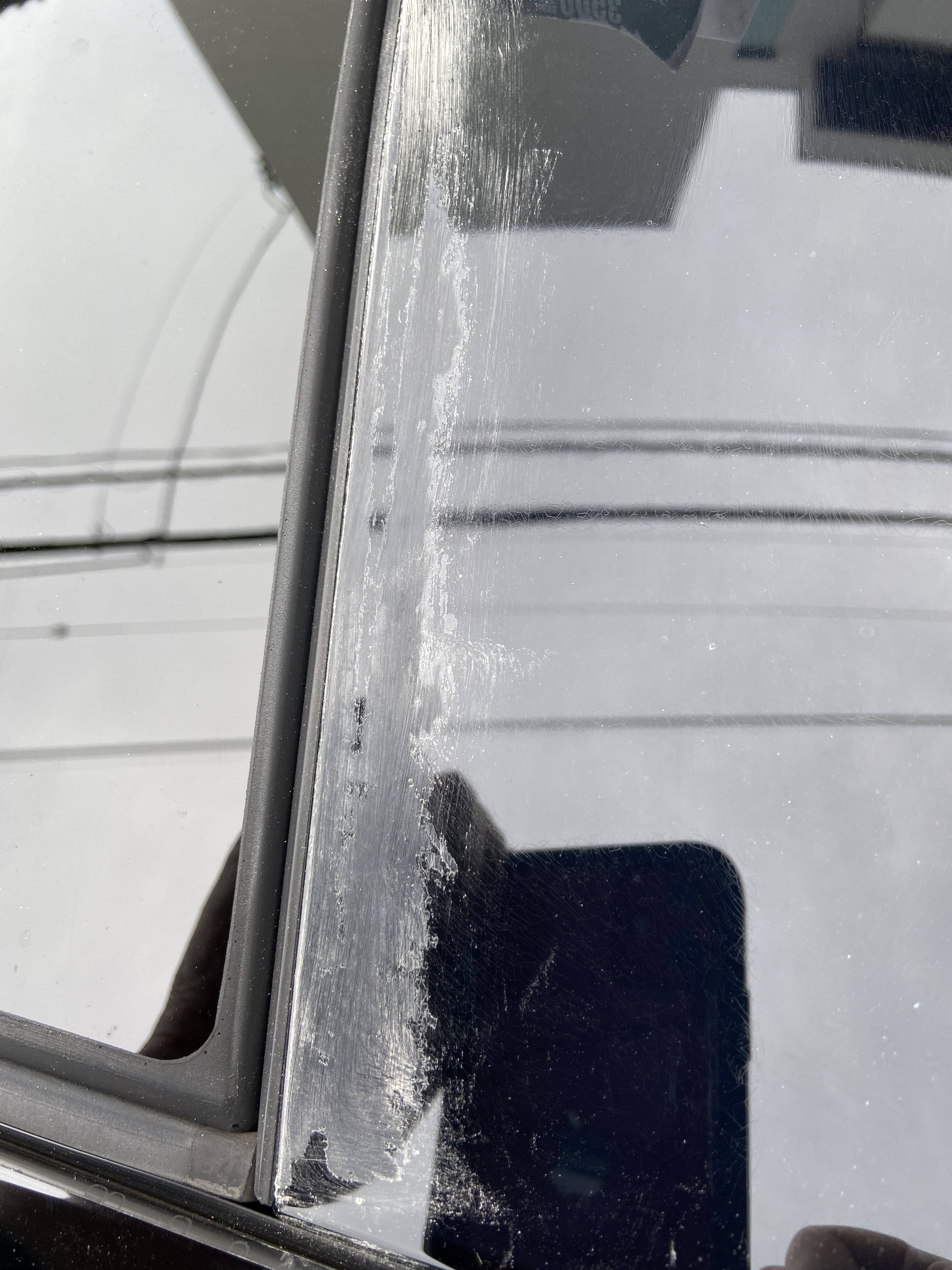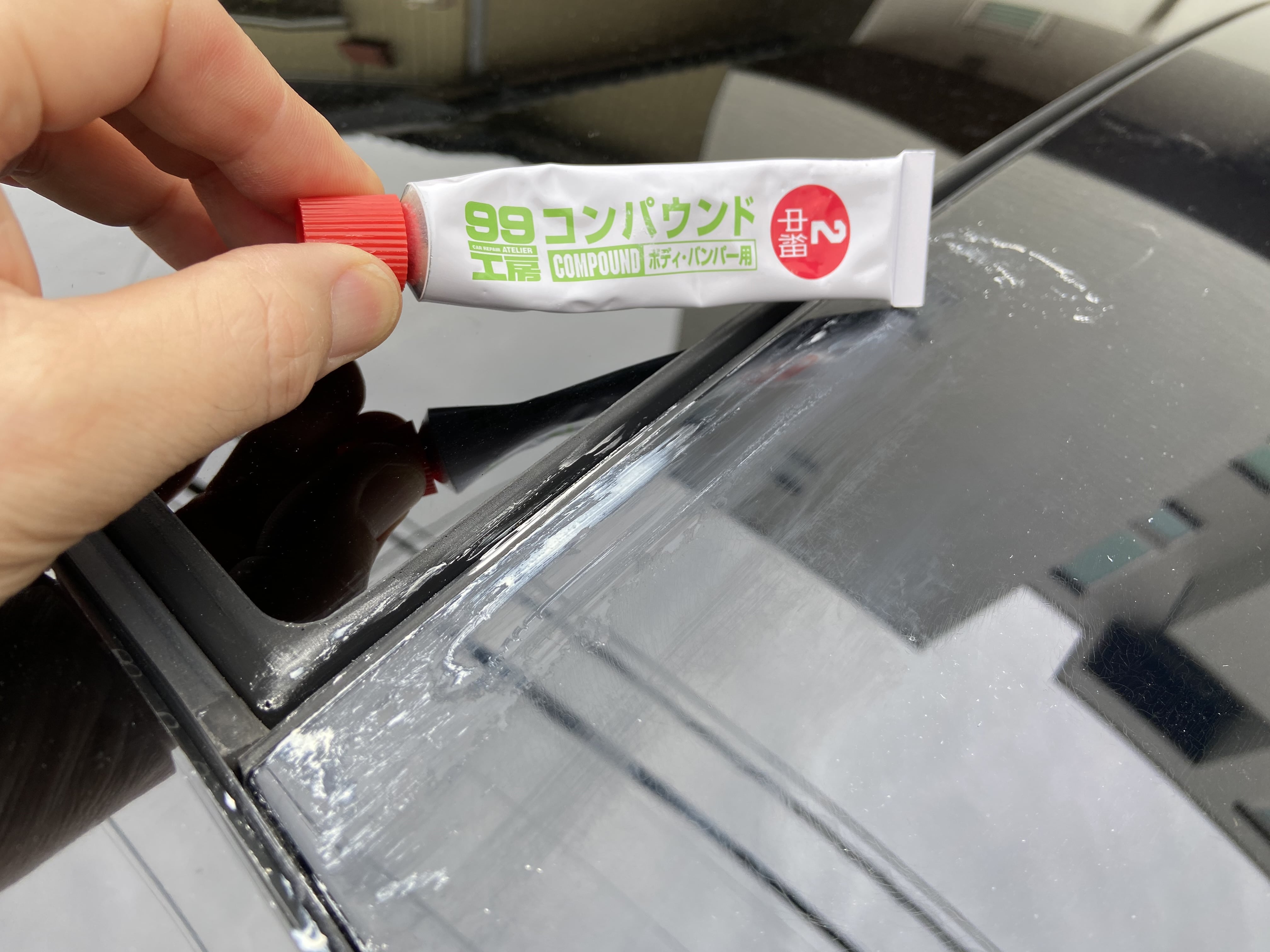 コンパウンドで修正しようとしたのですが、コンパウンドが段差部分に入ってしまいとってもひどい状態となってしまいました。