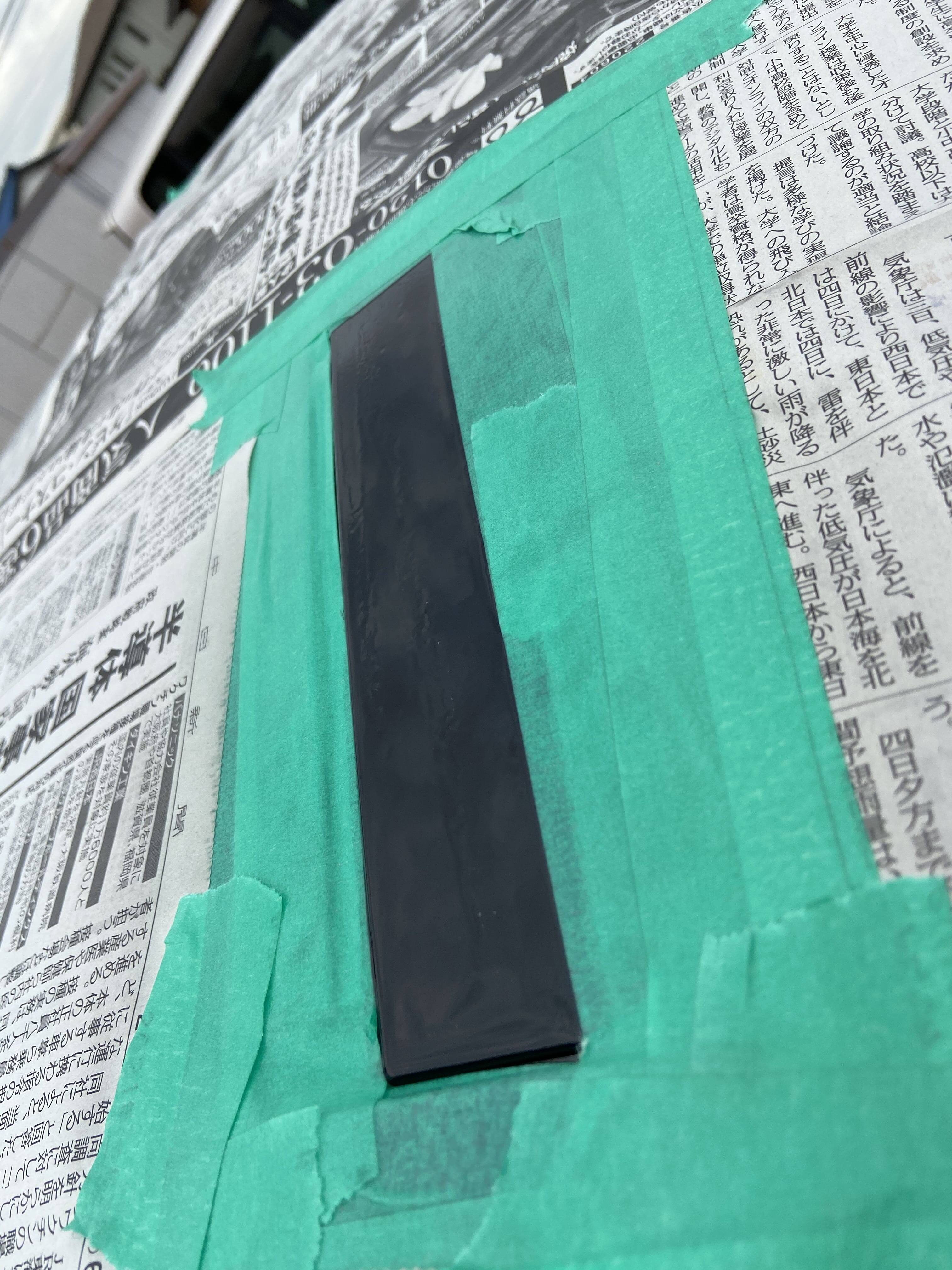 劣化していると思われる剥げた部分の周りのクリアも除去しまいしたので、マスキングして購入したクリア塗装のスプレー缶で3回ほど重ね塗りをしてみました。