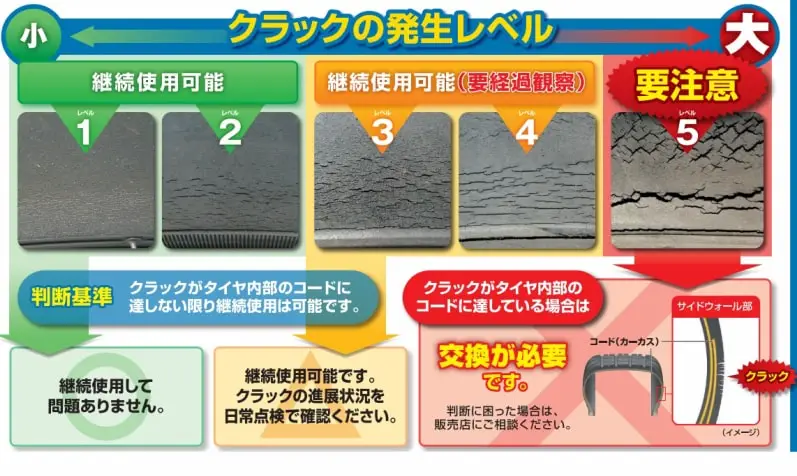 タイヤのひび割れの状況での使用の判断は日本自動車タイヤ協会のニュースも見て判断したのでお見せします。