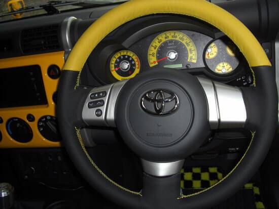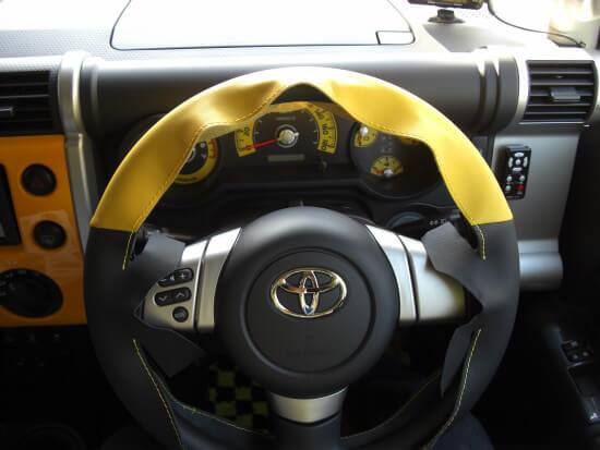 もちろんステアリングカバーですから、自分で装着しなければなりませんが、値段がFJクルーザー専用品でも9,765円でしたからとても安くイメージチェンジができると感じ、さっそく注文しました。