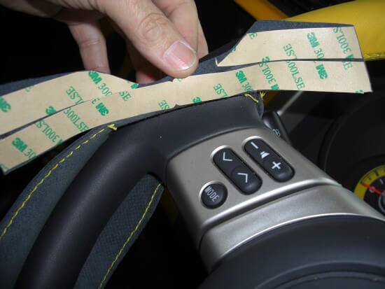 カバーをステアリングに馴染ませつつ、作業を行いますが、少し変かなと思ったら、もう一度もとの位置まで戻って作業を行えば良いだけです。