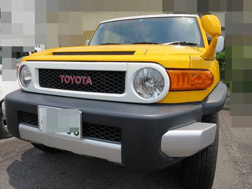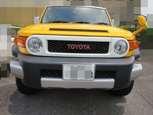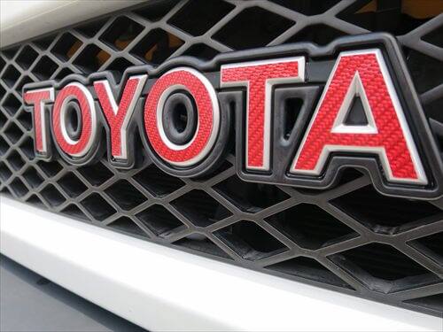 私のFJクルーザーもフロントグリルは白色に塗装したのですが、トヨタのエンブレムだけはノーマルの状態となっています。