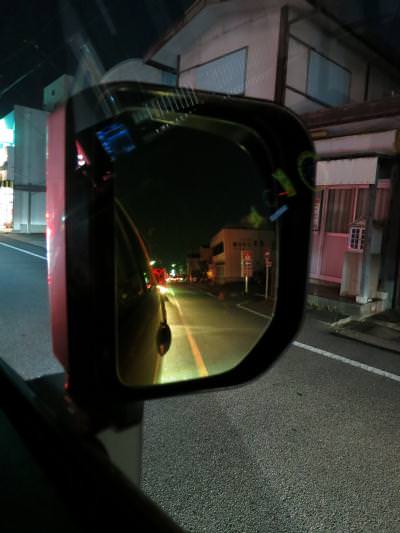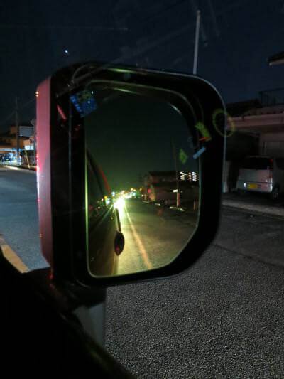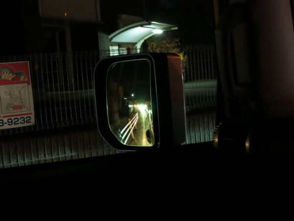 夜間に見たミラーの写真を載せますが、実際にはもう少し暗い状態ですが、コントラストがはっきりしているのがわかってもらえると思います。