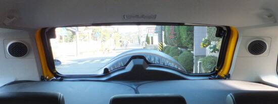 FJクルーザーのフロントガラスは縦の幅がありませんし、ガラスまで距離がありますので以外と視界は狭くて、バックミラーで見えなくなる部分が多いのです。