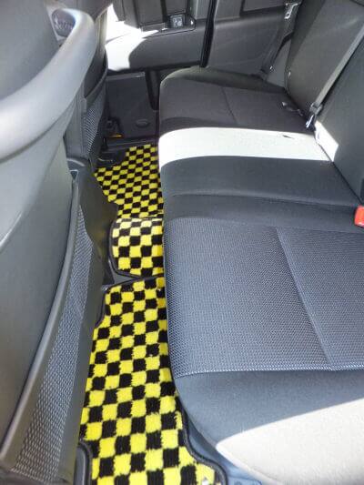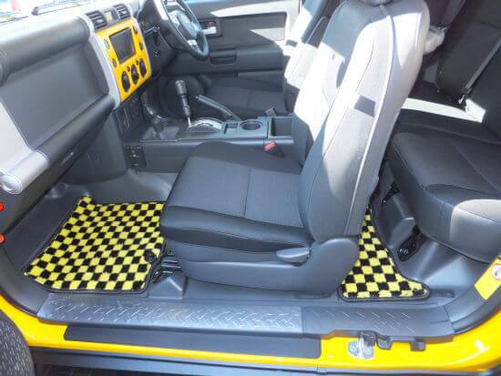 FJクルーザーの右ハンドル用デラックスチェックイエローのフロアマットは受注生産品とのことで、納入には7日ほどかかりました。