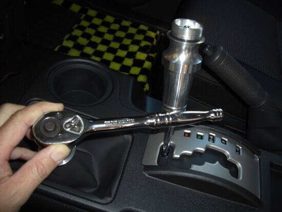 愛知トヨタのアルミシフトノブは本体が2分割となっていますので、まずベースの部分をはめ、ナットで固定します。