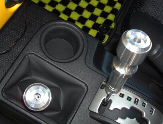 購入時にはあまり気にしていなかったのですが、トレイルチームのアルミのシフトノブを発見した瞬間にこれが欲しいと思ってしまいました。