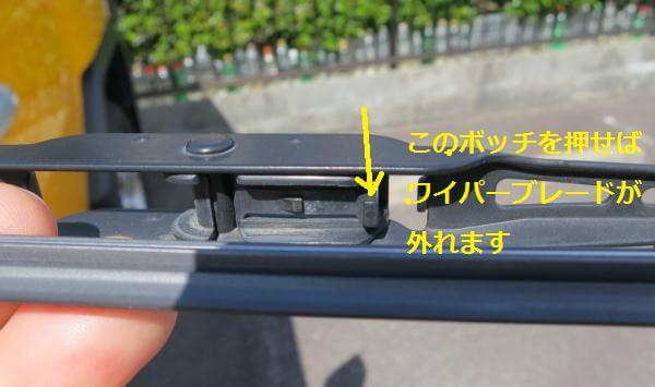 FJクルーザーのワイパーゴム交換はとても簡単で、ブレードを固定されているボッチを押して取り外し、ゴムを引き抜いて新しいゴムと付け替えるだけです。