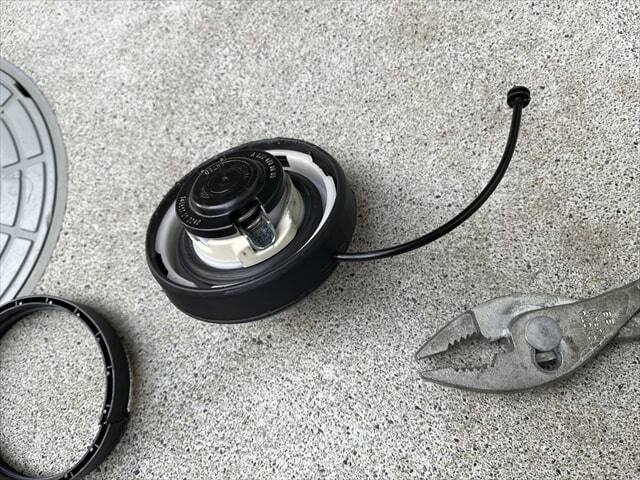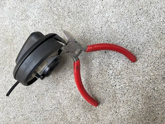 キャップ側は切れてしまったワイヤーが付いているリングをニッパーで切ってしまって外します。
