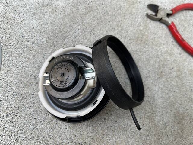 メルセデスベンツGLA45のフューエルキャップのワイヤーがキャップを閉める際に巻き込んで切れてしまいました。
