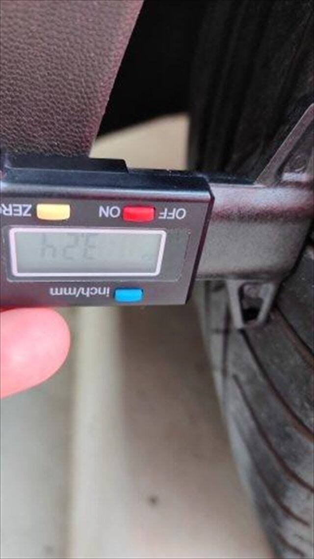 タイヤの溝は測ってみますとまだ3ミリ以上残っている状態ですから、車検でも通る状況です。