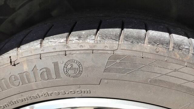 確かに交換してもらったコンチネンタルのタイヤは溝に沿って亀裂が入っていたほど劣化していました。