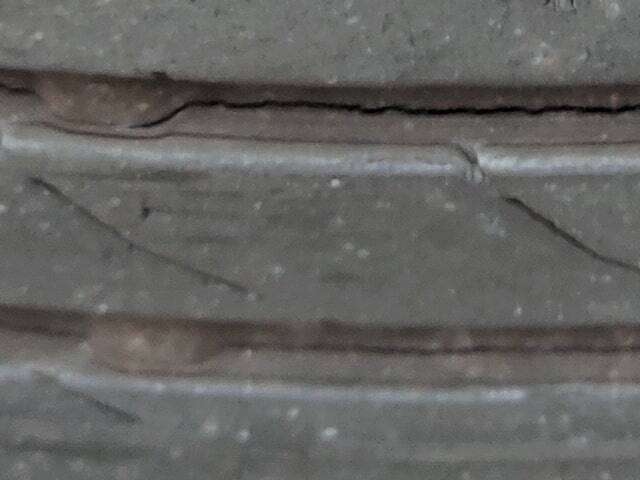 トレッド面もよく見ればかなり劣化しているのがわかります。