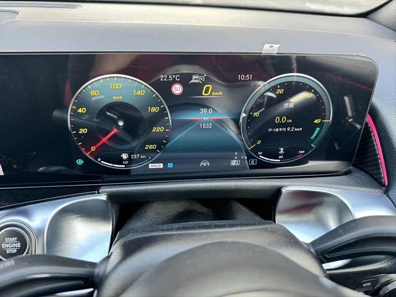 GLB180にはBSGが搭載されていますのでスタート時のエンジンのトルク不足をモーターの出力が補ってくれていますので、街乗りではまったく問題ありません。