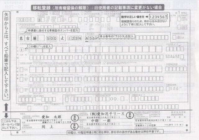 記入が必要なところは担当者が提出した車検証を見て追記してくれました。