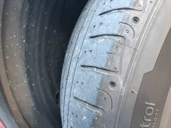 購入当初は冬の寒い朝などタイヤが冷えている状態でこのタイヤのガタガタする症状が発生していたのですが、今では夏の1時間ほど走行してタイヤが温まっている状態でも車庫入れでハンドルを思い切り切った時には振動が常時発生しています。
