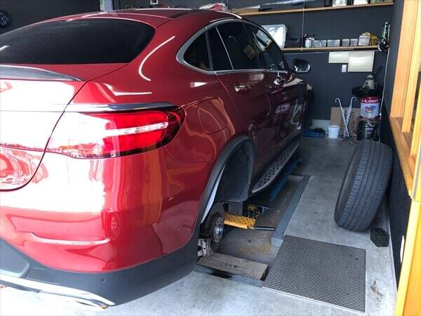メルセデスベンツGLCクーペ4マチックのフロントタイヤのタイヤが擦れて弾けてガタガタと振動がするのはデファレンシャルギアロックが掛かっていることによる空転だそうです。