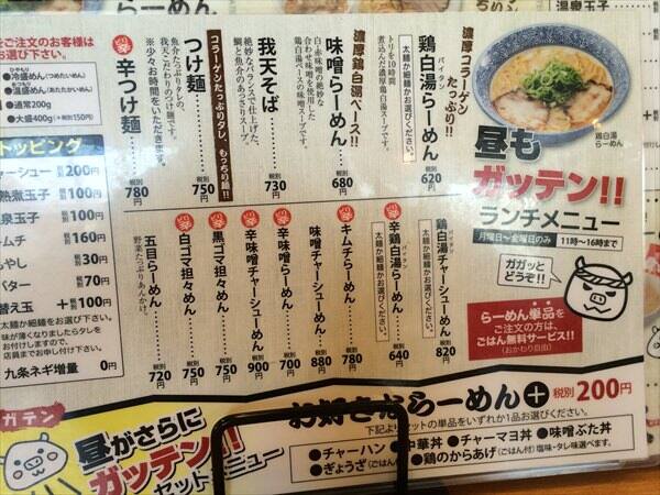 私はラーメンを食べる時にはガッツリ食べたい方なので、白湯ラーメンのレギュラーサイズだけでは物足りなく、210円の追加をしてしまいます。