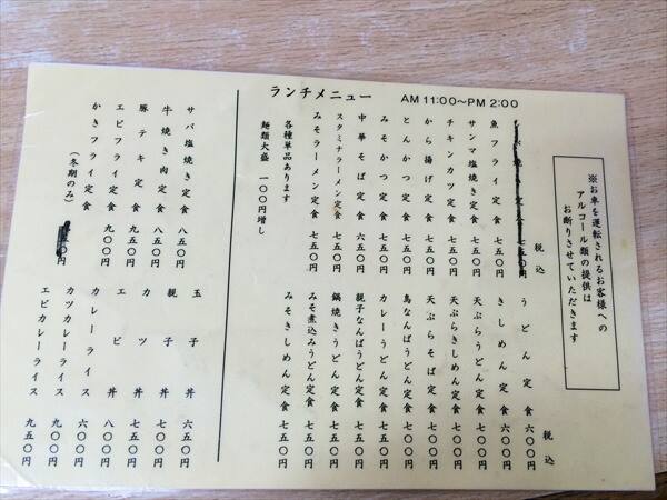 定食の価格も変わっていましたので、新しいメニューも載せておきます。