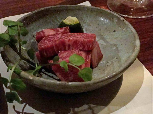 牛肉にはすでに味付けがされていましたので、レアに焼いて頂きました。