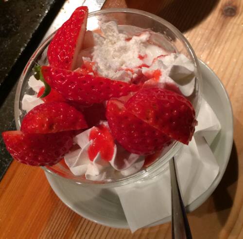 そしてハンバーグとイチゴパフェも頂きましたが、これだけ食べれ当たり前ですが満腹です。