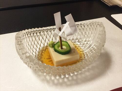 そして盛り合わせの八寸が出されるのですが、出して頂く時の演出がすごくて涼しさを感じるものでした。
