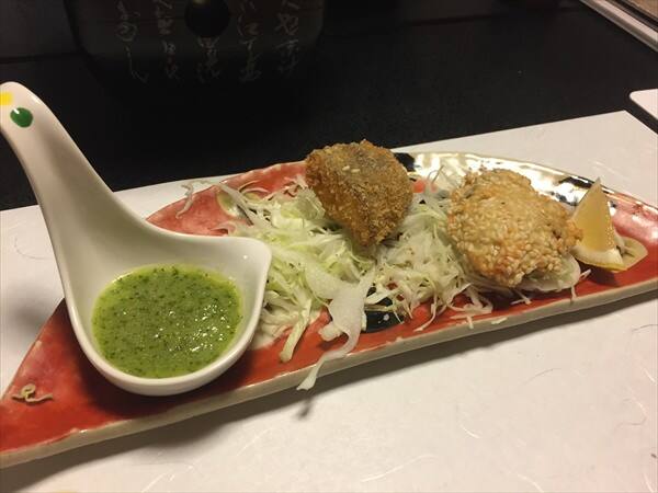 揚げ物は牡蠣と柿ですばらしいコラボレーションです。