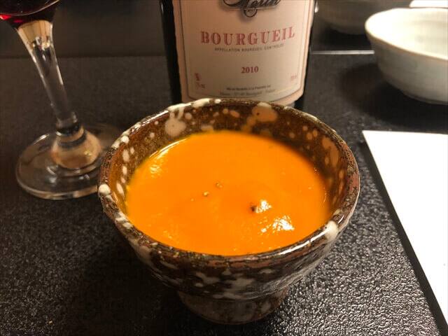 チーズの茶碗蒸しとなっていますが、この茶碗蒸しを美味しく頂くために赤ワインを頂きました。