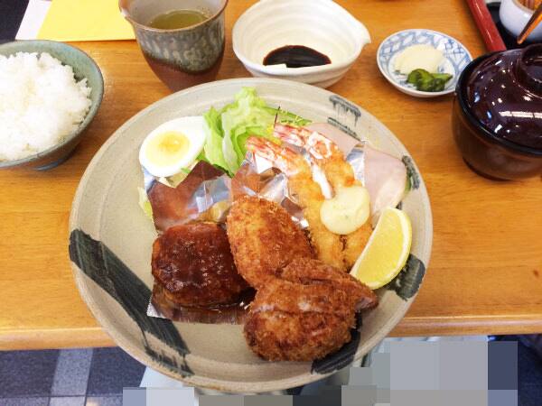 ヒレカツ以外にもコロッケ、ハンバーグ、エビフライの揚げ物が盛り合わせとなっています。