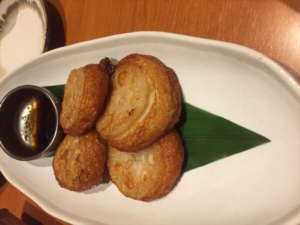 次にシャキシャキ蓮根の薩摩揚げ 生姜醤油にてはとても美味しく、もうひとつ食べたい程でした。