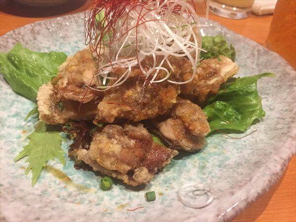 雛鶏の竜田揚げ 香味ソース掛けサラダスタイルはガーリック風味で美味しく頂きました。