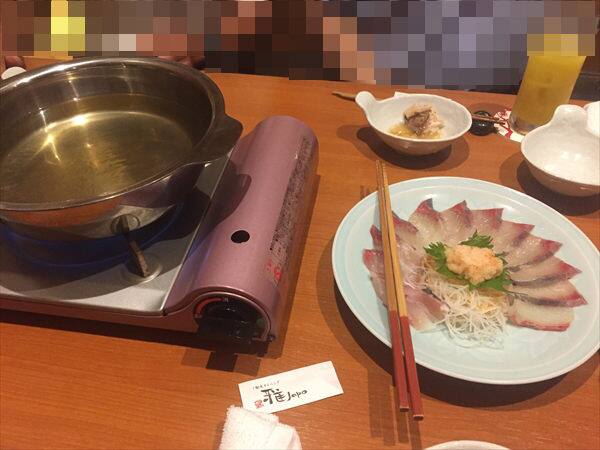 某サイトのメニューでは朝〆真鯛と肉厚若布のしゃぶしゃぶとなっていましたが、当日はハマチのしゃぶしゃぶとなっていました。