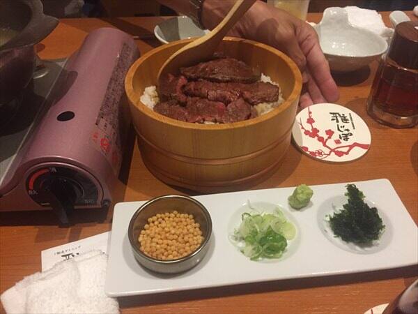 そしてお店の看板メニューである名物 特上黒毛和牛のひつまぶし 薬味と共にが出されます。