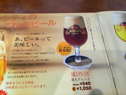 キリンビールのお店ですからさすがにビールはこだわっているようで、注文してから運ばれるまで4分ほどかかりますと言われました。