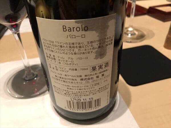 こちらはコスパ抜群のバローロと言われているワインです。