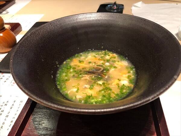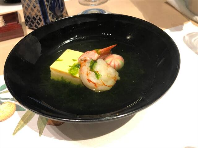 赤海老と玉子豆富のあおさ椀