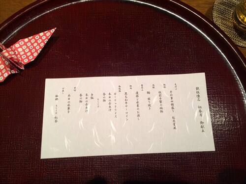 テーブルには懐石料理にふさわしくお品書きが出されていました。