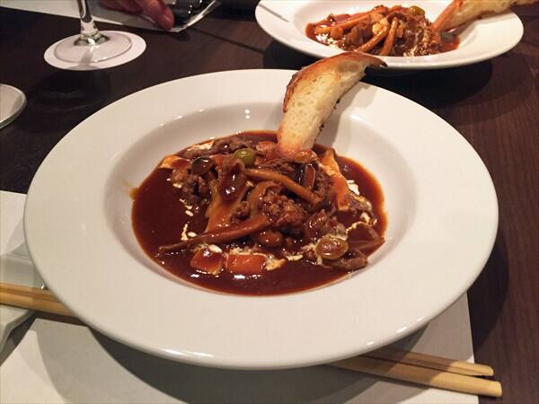 そしてその次が薄切り牛肉のデミソース煮込みです。