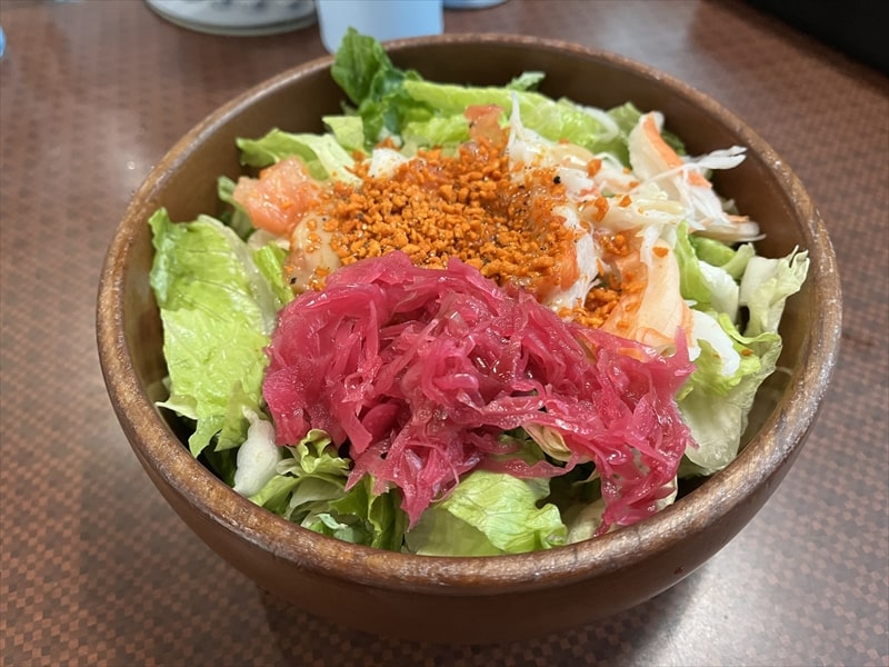 野菜が少ないと思ったので大人が注文したサラダ・スープセットの大根がメインのディッシュサラダを少し分けてあげました。