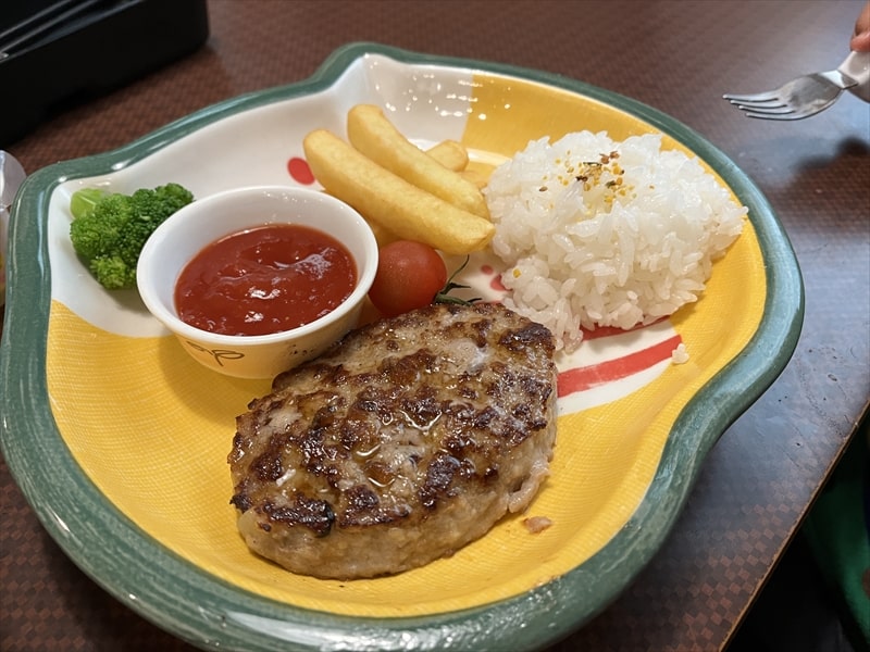 子供メニューにはキッズレギュラーバーグディッシュ520円があるのですが、こちらはハンバーグが100グラムですからぶ〜ちゃんのおこさまランチとあまりボリュームが変わらないと思います。