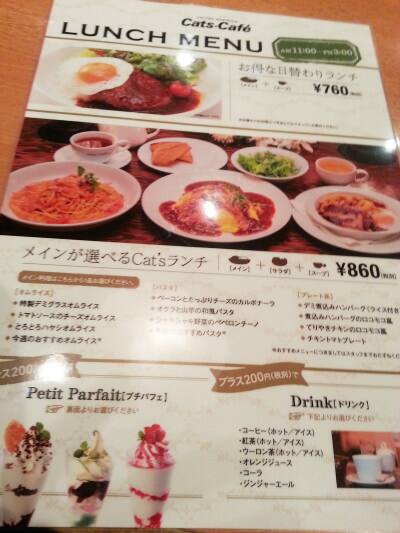 キャッツカフェの日替わりランチは760円ということで、今回はこちらでランチを食べることにしました。