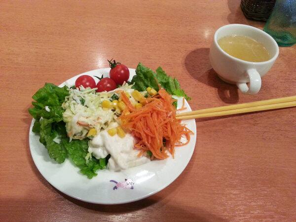 ランチにはサラダなどのビュッフェが付いていますので、料理が運ばれるまでそちらを食べて待つことになります。