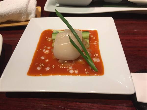 オードブルはホタテのカルパッチョで美味しく頂きました。