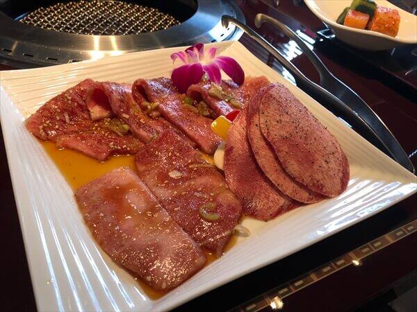 特選ロース薄切焼、上カルビ焼、タン塩焼