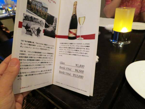 今回は泡系が飲みたかったので、F 1 の公式シャンパンに選ばれているG.H.Mumm 13,000円を飲むことにしました。
