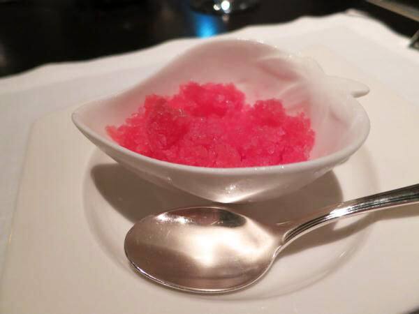 口直しのシャーベットがだされ、いよいよ肉料理です。