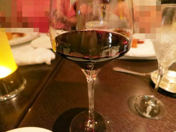 フィレ肉のグリル フォアグラソテー添えトリュフソースがあまりにも濃厚でおいしいので赤のグラスワインを注文しましたが、とても飲みやすい赤なのに濃厚な感じがしたワインでした。