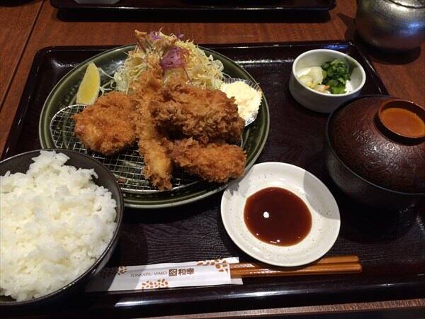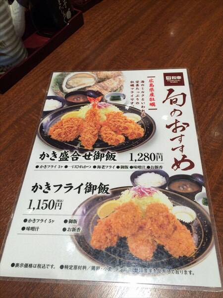 とんかつ和幸のかき盛合わせご飯の金額で、かつやのカツ丼とトン汁が2回食べられるのかと考えたのです。